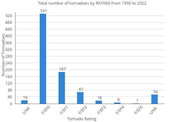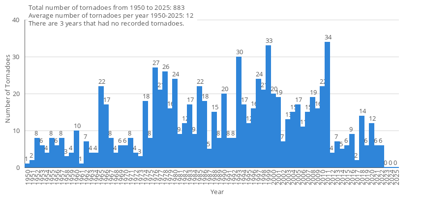 The paths on the map above represent the tornado tracks of all the tornadoes listed in the table below. You may need to zoom in one or more times to view the shorter tracks.
